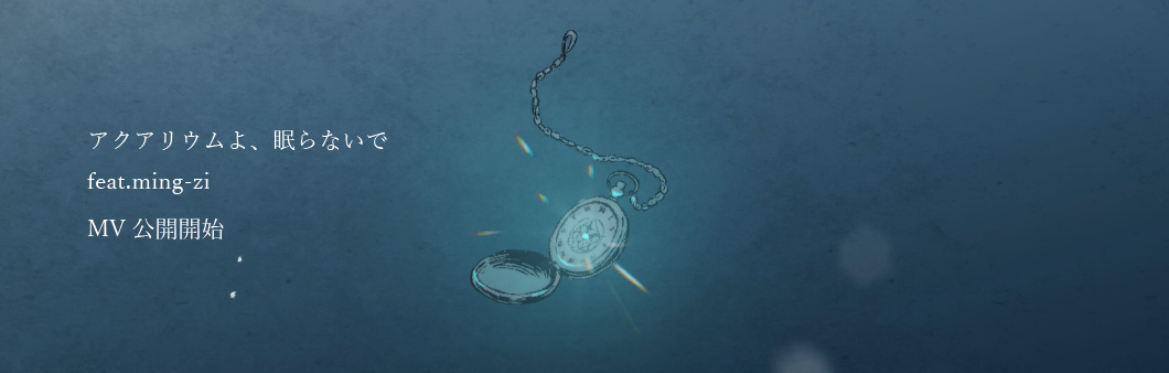 ひとこと 2026年03月26日 🌟来月4/26東京流通センターに開催されるM3春に出ます。 お品書きを公開しました。 2/14「アクアリウムよ、眠らないで」 クロスフェード公開&通販予約開始しました 【詳細はこちら】 お知らせ 2026年4月10日 「アクアリウムよ、眠らないで」より「忘れてやらない feat.ming-zi」MVを公開しました。 2026年4月1日 新曲追加 嘘つきの魔女 2026年3月17日 新曲追加 白い彼岸より 2026年3月15日 新曲追加 乾いた朝