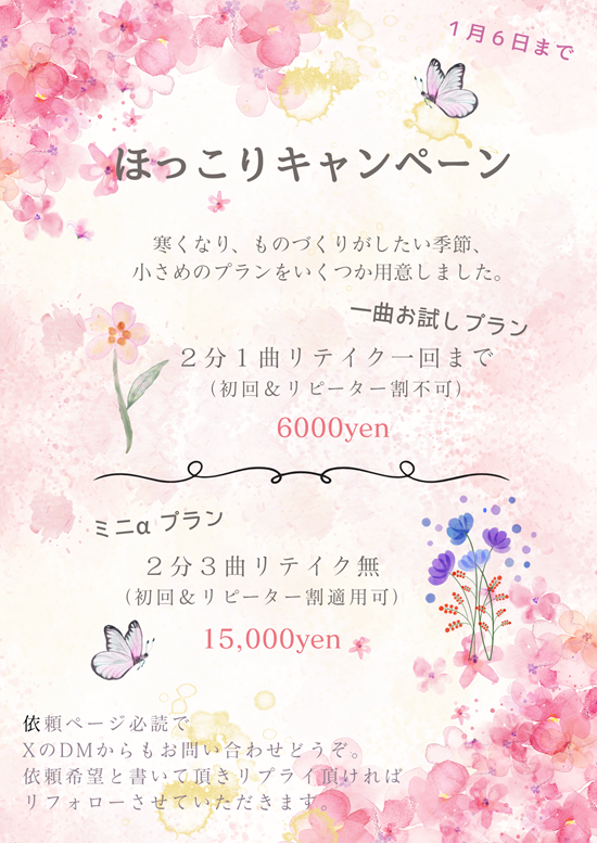 ほっこりキャンペーンは来年の1/6まで。