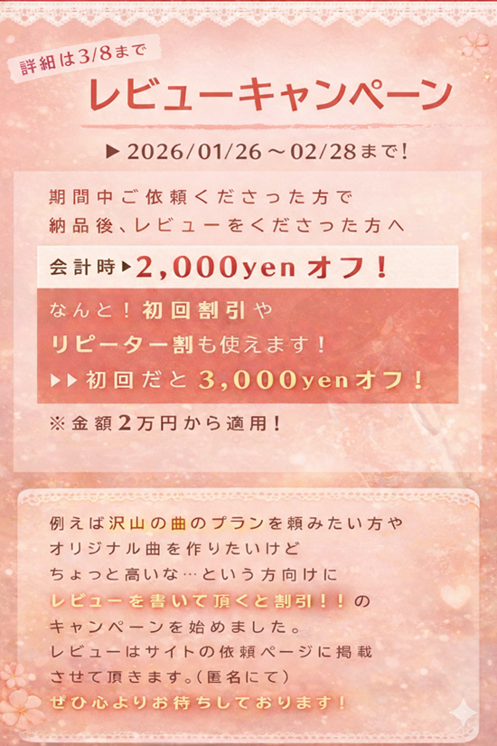 レビューキャンペーン開催のお知らせ